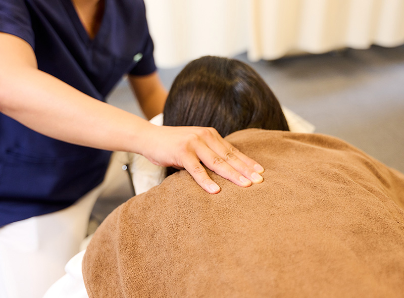 痛みは、筋肉に負担がかかり硬くなることで血流が悪化し、結果として生じます。そうした場合、硬くなった筋肉をほぐし血流を改善することで、痛みは軽減されます。マッサージ(手技療法)、鍼灸、ハイボルトなどの施術を用い、まずは今ある痛みを和らげることを目的とした治療を行います。これらの処置により、多くの方は症状が改善され治療を終えられます。あとはセルフケアを行いながら、再発を防ぐことが理想です。